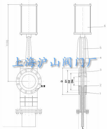 七、氣動穿透式刀型閘閥外形尺寸: