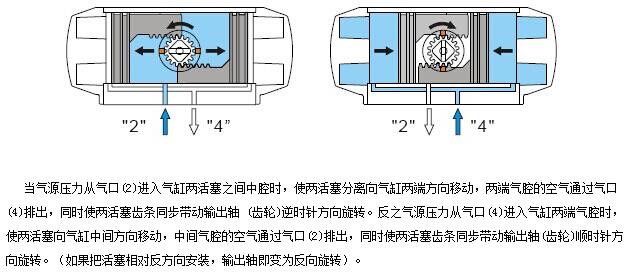 1、雙作用氣缸的工作原理: