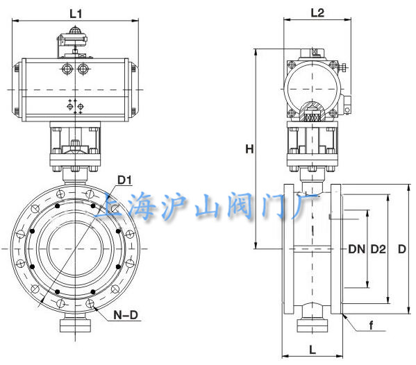 七、D643H氣動法蘭式金屬硬密封蝶閥主要外形連接尺寸(單位:mm)